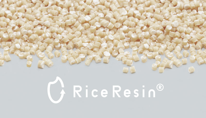 Domestic biomass plastic derived from rice (inedible). Rice unsuitable for human consumption, such as old rice and crushed rice generated by rice confectionery manufacturers, is upcycled into plastic using new technology.